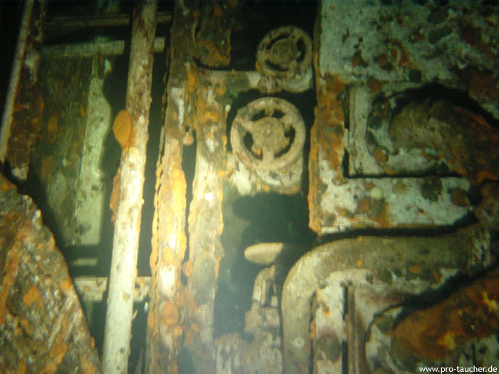 Durch seine Schieflage bietet das Betauchen des Wracks ein besonderes Gefühl. Leicht wird das Orientierungsgefühl insbesondere in der Brücke und den anderen Räumen hierdurch irritiert.