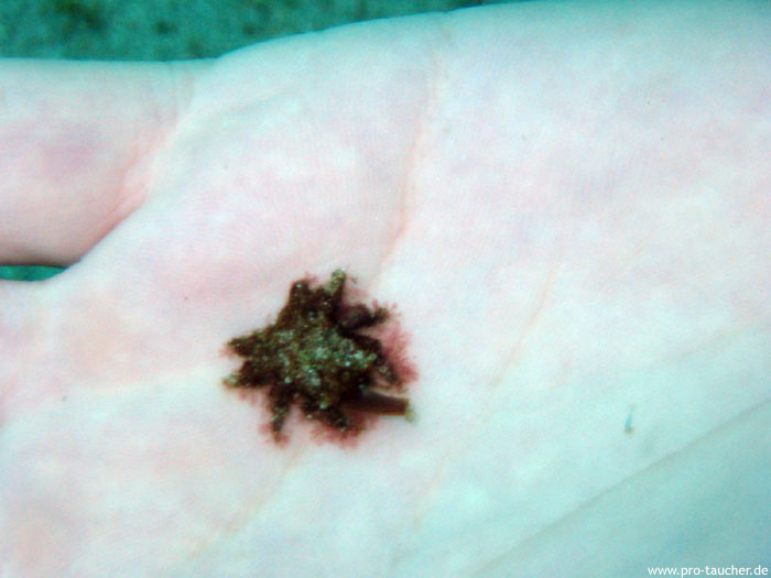 Auf und im Sandfeld ist jede Menge los. Allerdings ist es hier ohne Guide nur mit einem sehr guten Auge lohnenswert, da die Tarnung der Tiere perfekt ist. Überall sind kleine Spinnenkrabben, Korallenkrebse, Partnergarnelen, Sandaale, Teufelsfische, Steinfische, Peppersepias und vieles, vieles mehr zu finden. Ein Tauchgang, der es in sich hat!