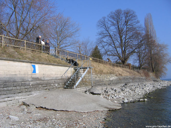 Einstieg entweder von innerhalb des Campingplatzes (nur für Gäste des Campingplatzes, anderenfalls Tageskarte kaufen) aus oder über die Straße am Tauchplatz Seezeichen 24.