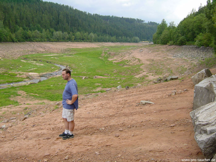 Taucher erwarten alte Baumstümpfe, ein ehemaliges Flussbett, eine ehemalige Straße und der "Dom" (alter Abfluss). Unsere Bilder der abgelassenen Talsperre erlauben einen guten Überblick über den Tauchplatz.
