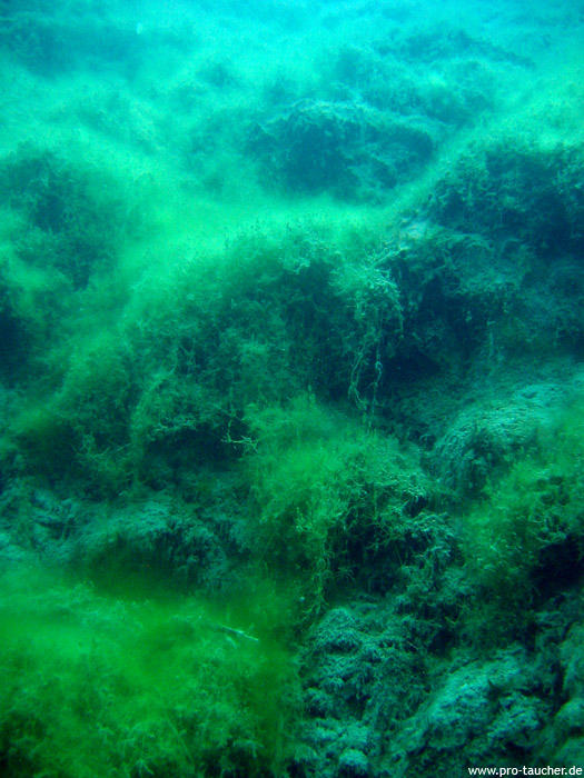 Einstieg 5: Auch hier ist ein kurzer Fußmarsch von 3-5 Minuten nötig. An diesem Tauchplatz taucht man am besten zur linken Hand weg an der Steilwand entlang. Hier gibt es jede Menge Tiere, v.a. Krebse zu sehen. Auch hier liegt ein Bootswrack und eine Kabeltrommel.