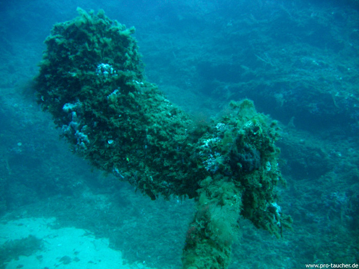 Das Wrack ist stark zerfallen, aber mit vielen Details. Am Wrack findet man viele Congeraale und Muränen. Ausserdem wartet ein riesiger Hummer im Bug.