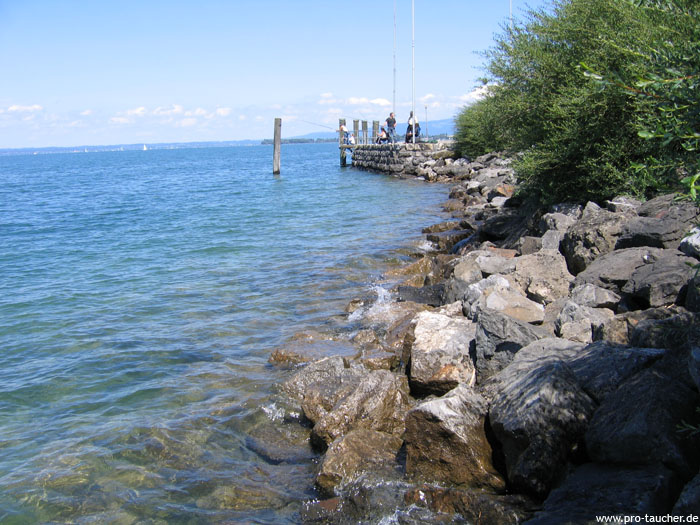 Der Tauchplatz befindet sich direkt am Bahnhof von Rorschach. Hier finden sich eine Unmenge schön angelegter Parkplätze, die sich in ein bis zwei Minuten Laufentfernung vom Einstieg des Tauchplatzes entfernt befinden. Toiletten befinden sich im Bahnhof, es soll auch (ab und zu) ein Dixie-Klo bei den Parkplätzen geben.
